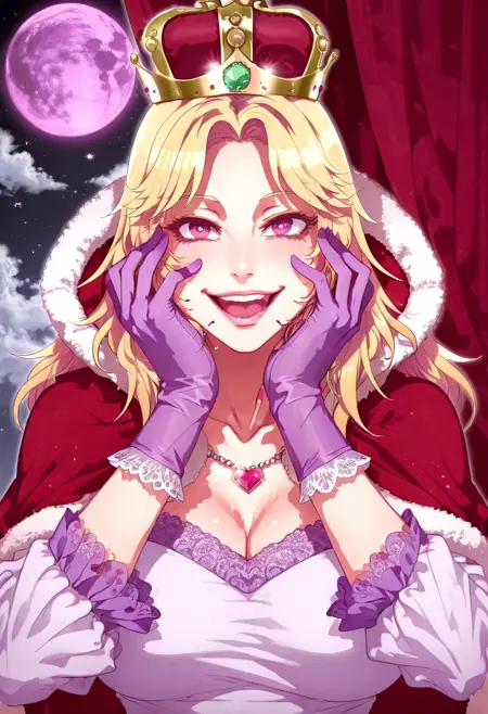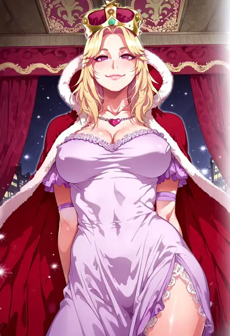 2. (华丽的红金王冠,红色披风,白色毛边装饰心形吊坠,无上装,无下装,裸体,)