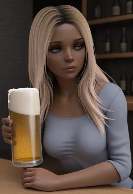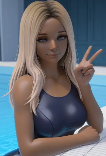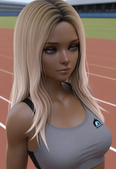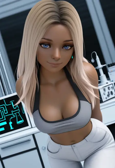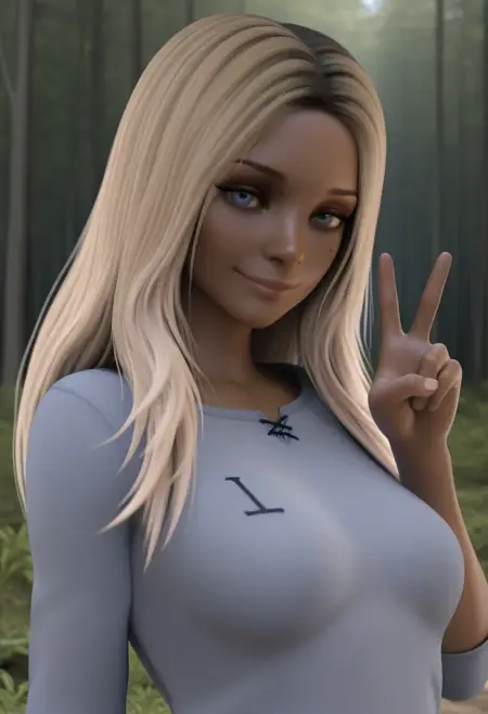 Emma,长发,金发,中等大小的乳房,蓝眼睛,深色皮肤女性,彩色头发,痣,嘴唇,鼻子,