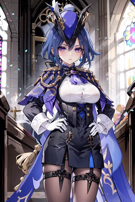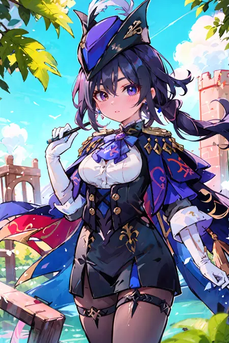 Lora model of Clorinde. Trained with illustrations and enhanced by 3D model for best accuracy of the default costume, while still remaining great flexibility to remove/change the clothes.