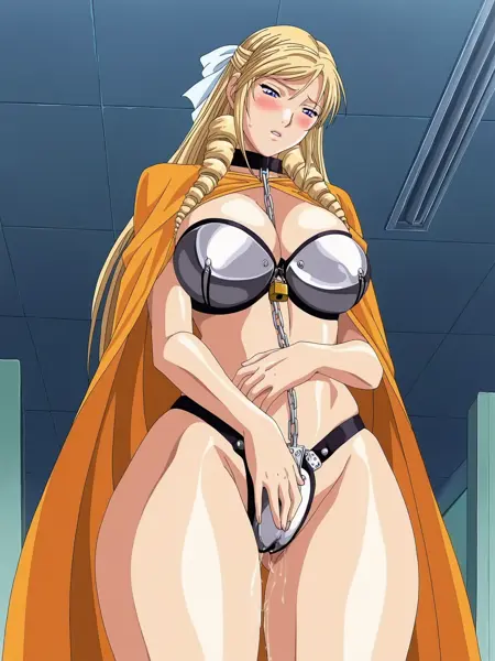 순결 브라, 순결 벨트, 검은 목걸이, 자물쇠, 순결 벨트의 자물쇠, 주황색 망토