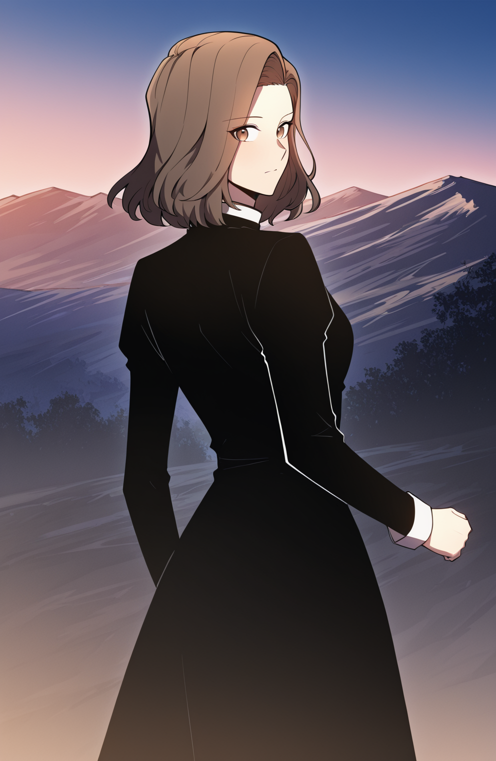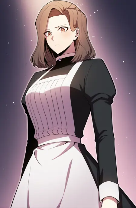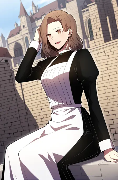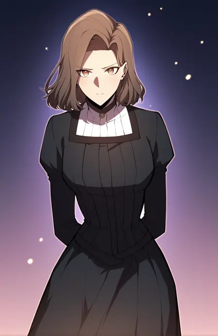 | トレーニングワード | 1 girl, solo, brown hair, medium hair, side part, slightly wavy hair, swept bangs, brown eyes,コピーしました! Gilly_eveninglook, long cape, dark blue cape, clasp cape, high collar, cloak clasp,striped blouse, high collar, long sleeves, wide sleeve, grey blouse, vertical stripes, waist belt, dark pants, grey boots, covered shoulders,コピーしました! Gilly_attire, long sleeves, light blue top, high collar, dark trim, black line details, pleated skirt, white skirt, layered cuffs, simple outfit,コピーしました! Gilly_fullblack, black dress, long sleeves, high collar, white collar, gold button, white cuffs, full dress, long skirt, tight cuffsコピーしました! Gilly_maid, maid uniform, black dress, long sleeves, high collar, white collar, gold button, white cuffs, white apron, pleated apron, waist apron, full apron, formal maid atireコピーしました! Gilly_winter, black dress, long dress, fur shawl, white fur trim, white cuffs, winter outfit, elegant dress, long sleeves, winter outfitコピーしました! |