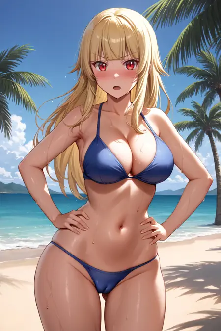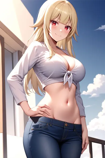 활성화 태그: mina_tachibana; 함께 사용할 것: 긴 머리, 앞머리 끊어진 스타일, 히메 컷, 측면 머리카락, 금발 그리고 빨간 눈 .