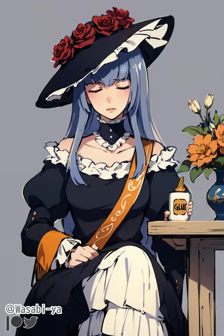 닫힌 눈 대신 "한쪽 눈만 닫힘, 파란 눈"이라고 입력할 수 있습니다(또는 열린 눈의 경우 단순히 "파란 눈"만 입력해도 됨). 옷은 예시대로 제거하거나 변경할 수 있습니다. 62장의 이미지로 학습되었습니다(다양한 가로세로 비율 및 클로즈업을 위해 잘린 몇 장의 중복 이미지 포함).