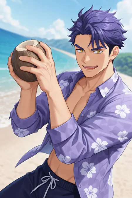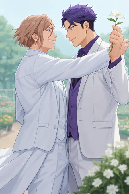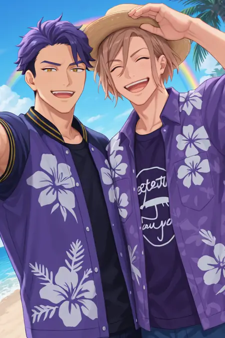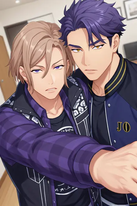 両方のキャラ = settsu banri and hyodou juuza-gay couple focus, brown-purple_settsu banri and hyodou juuza_hair, duo, manly,