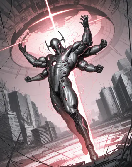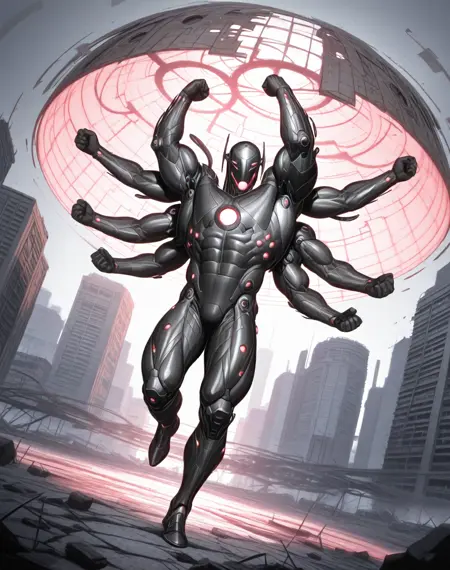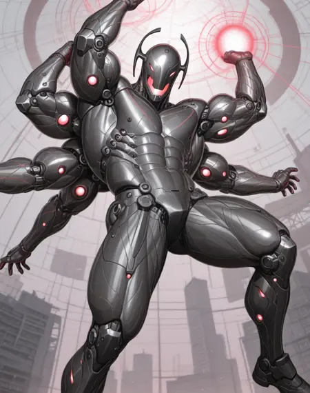 울트론이 여러 팔을 가진 모습을 보여주는 커버와 유사한 결과를 만들 때, (multiple arm)과 같은 추가 프롬프트를 포함시키면 도움이 될 수 있습니다.
