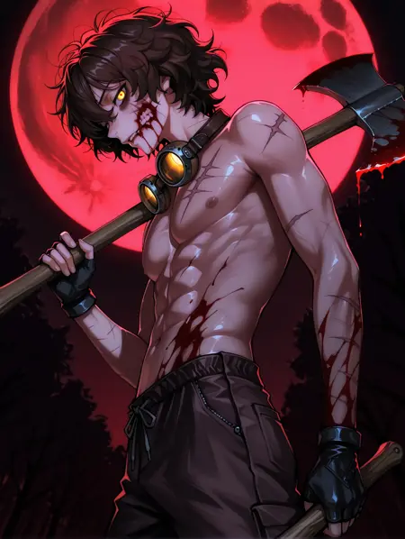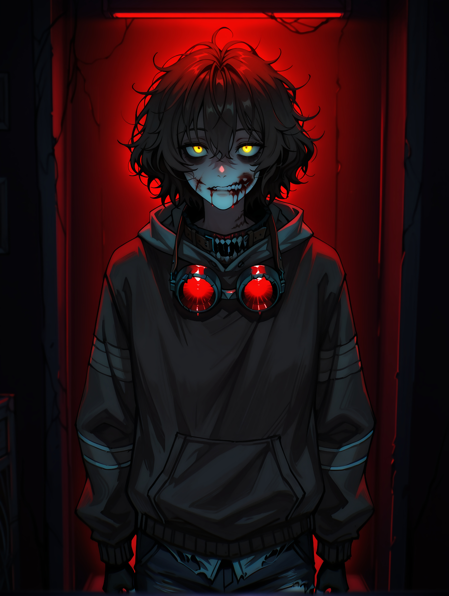 オプションプロンプト:horror (theme), fit body, goggles on head
