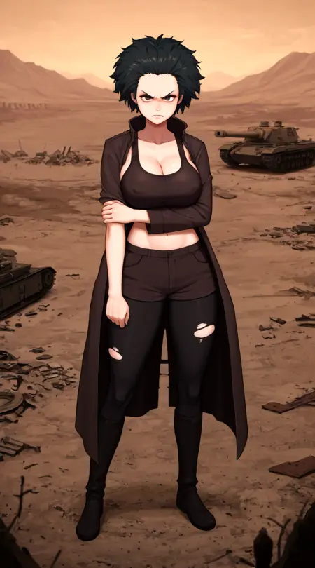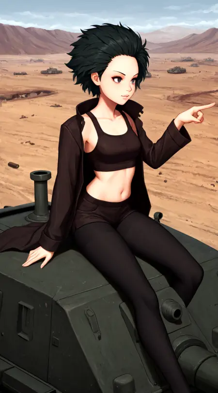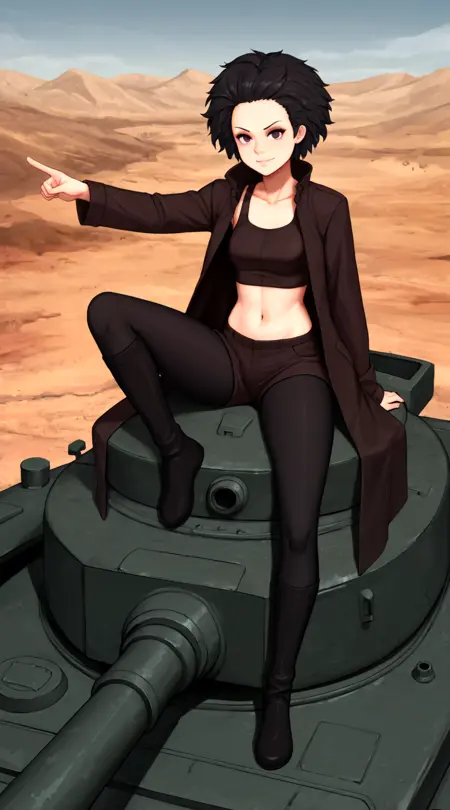 例のプロンプト: lash_advwar, tank_top, coat, leggings, shorts,