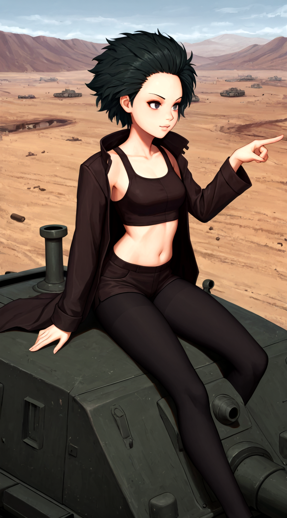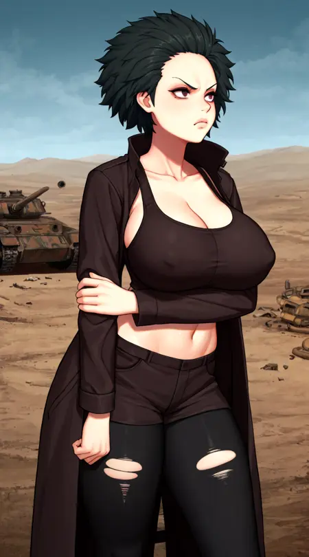 예시 프롬프트: lash_advwar, tank_top, coat, leggings, shorts,