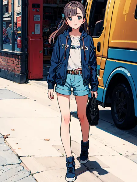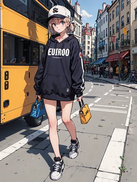 最佳质量,详细背景,女孩,, euro_street, random_wear,