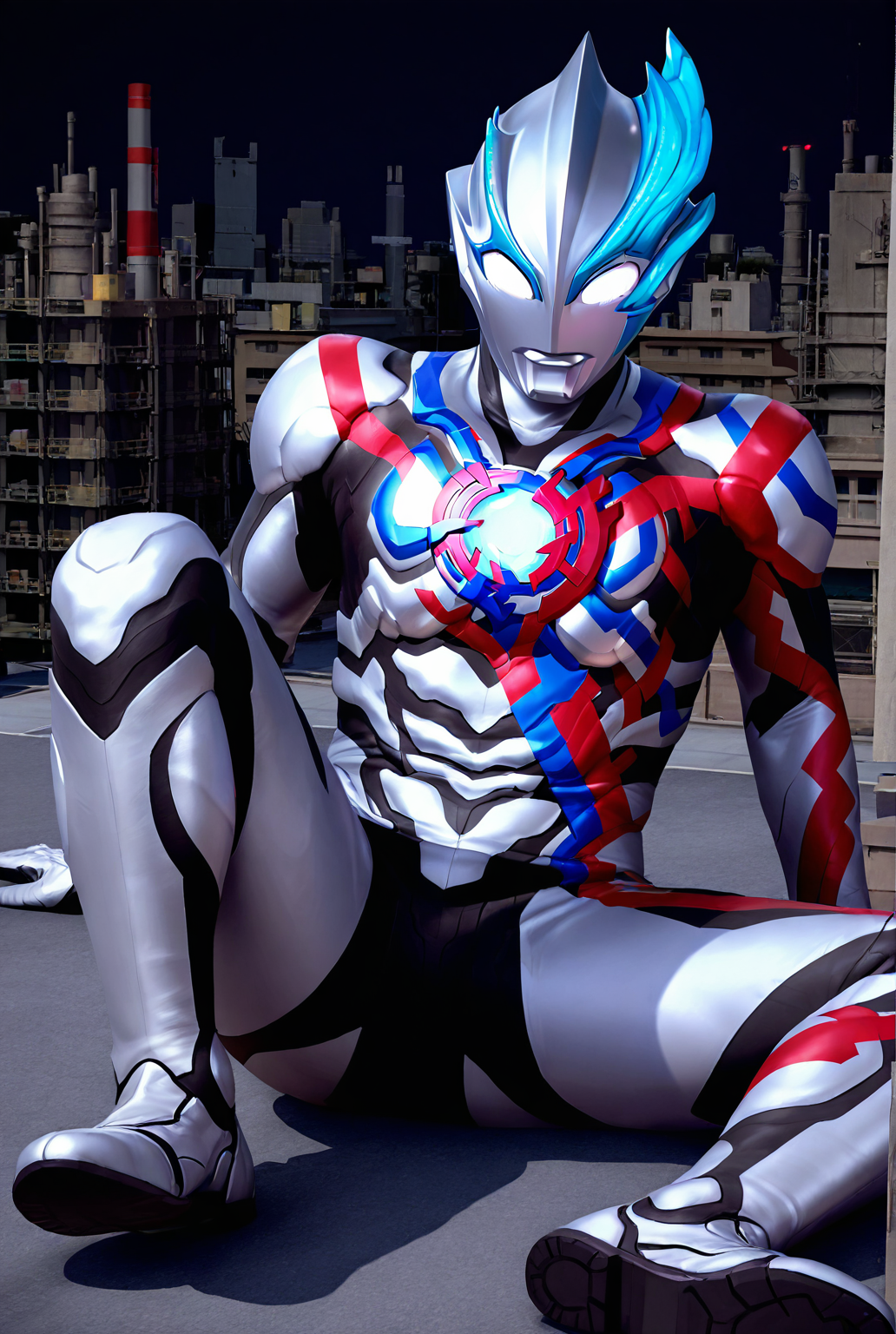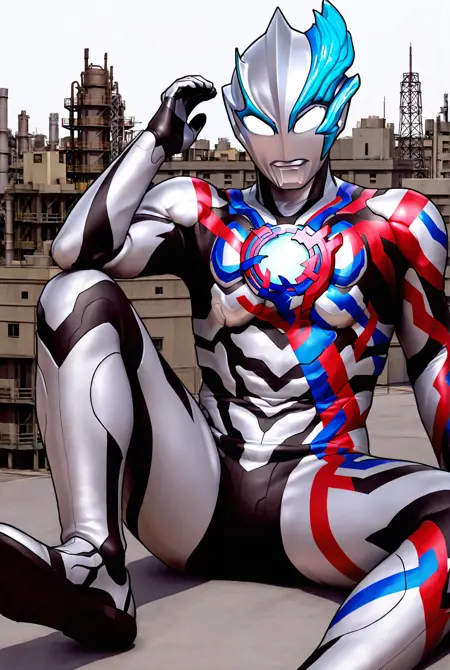 Trigger words : ultraman b1azar, alien, tokusatsu, glowing eyes, blue eyes, bodysuit, multicolored clothes