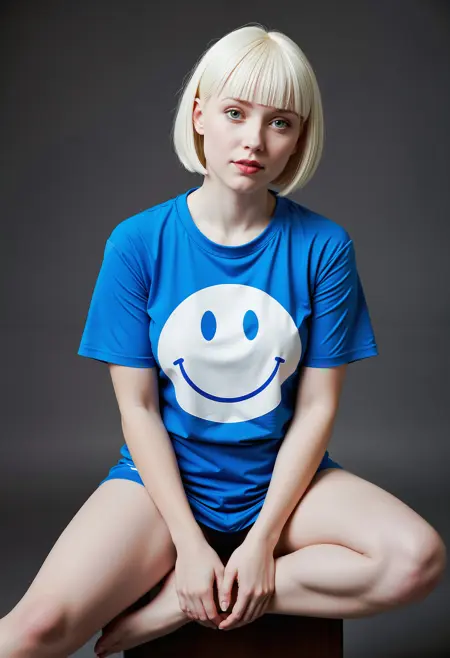 大多数训练图像中的人物拥有白发,但该 LoRA 似乎也能很好地适配其他发色。我已测试过蓝色、粉色和彩虹色。