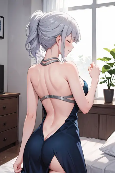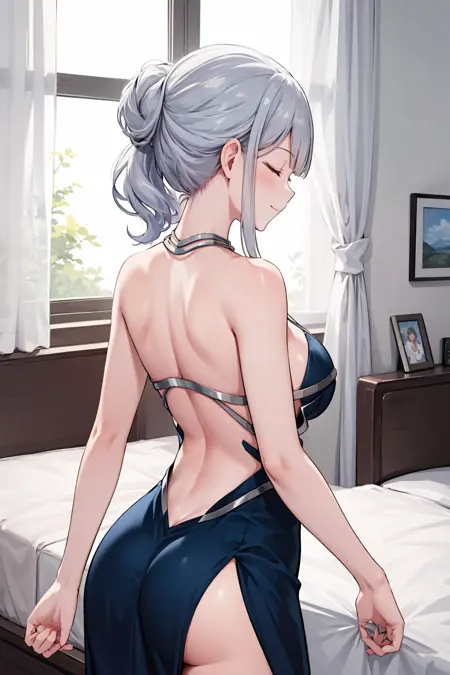 また、不完全なAK-12(静寂苍藍)のキャラクターロラとして使用することも可能:grey hair, closed eyes/purple eyes, hair up, ponytail, medium hair