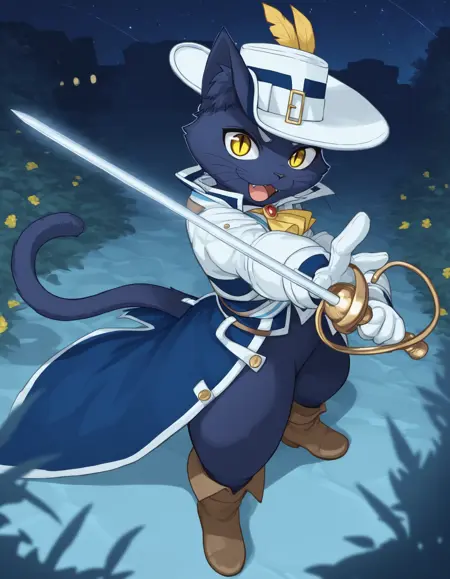 트리거 단어는 Aramis이며, 그의 옷차림과 일반적인 해부학적 특징을 명확히 지정하기 위한 다른 태그도 있습니다. 예: semi-anthro, digitigrade 등 (게시물의 메타데이터 참조). 또한 그가 옷을 입지 않기를 원하신다면, 긍정 프롬프트에 nude를, 부정 프롬프트에 clothing을 추가하세요.
