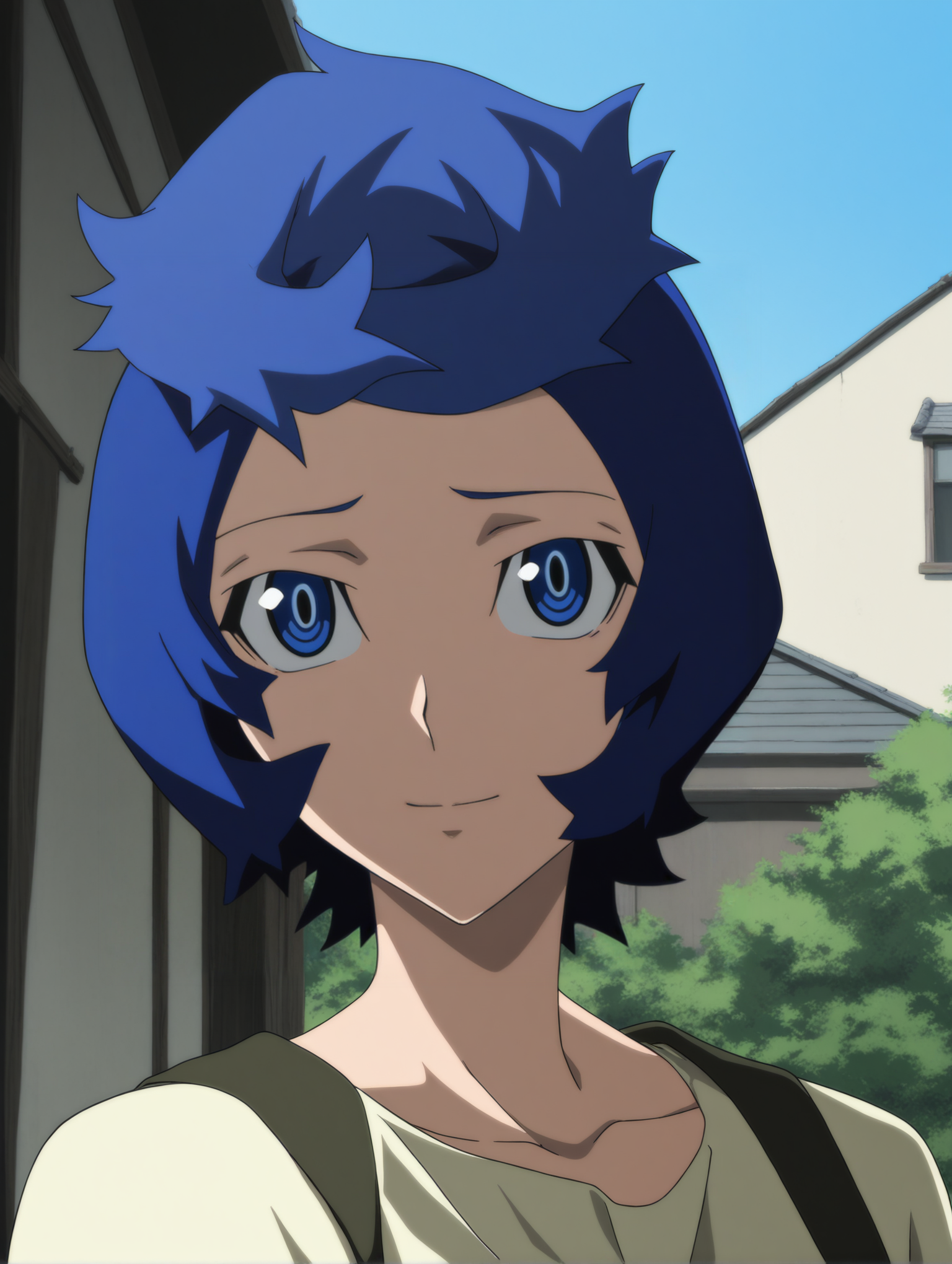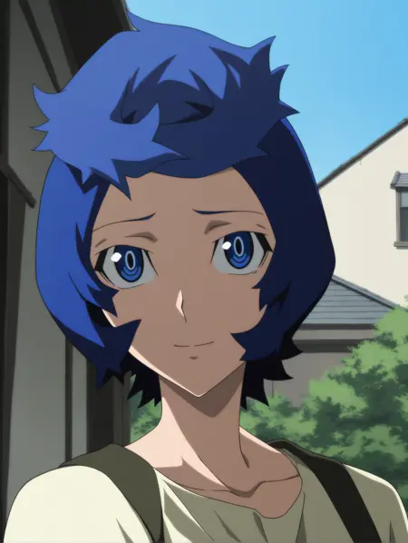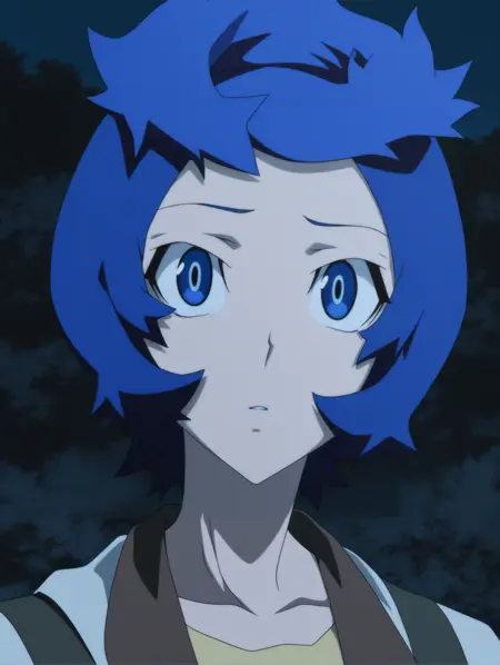 IL_前田元子,1girl,solo,blue hair,blue eyes,short hair