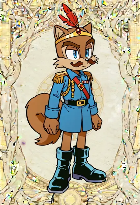 | 학습된 단어 | KingAcornSATAM, 1boy, squirrel-like figure, regal blue military-style uniform, decorative belt, gold crown with a red gem centerpiece and red feather accents brown mustache, blue eyes, black boots, brown fur, dark brown eyebrows, sonic the hedgehog복사됨! |