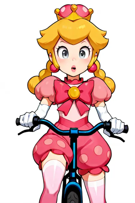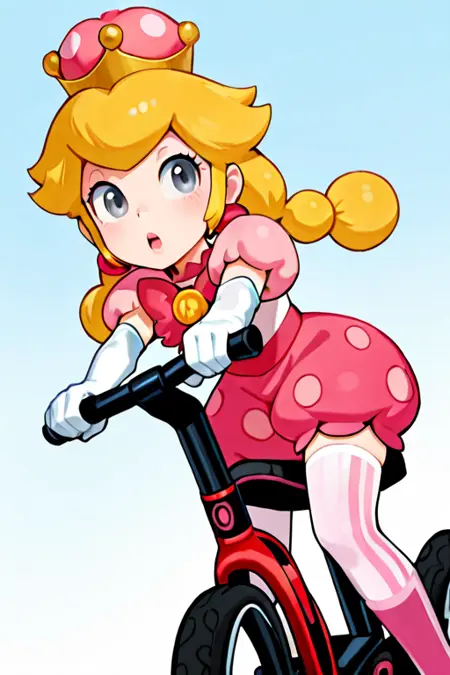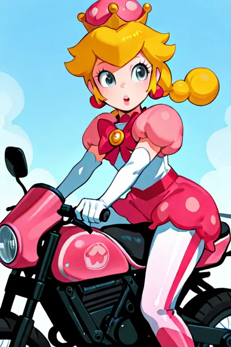 Also featuring: Peachette, Blonde Hair, Gray Eyes, Super Crown, Biker Outfit, Puffy Shorts