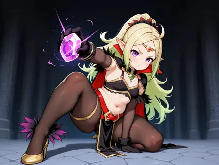 | 학습된 단어 | NowiFE, blonde hair, long hair, green colored tips, parted bangs, purple eyes, ahoge, pointy ears, ponytail, circlet, green heart necklace, two-tone scale top, ribbon, midriff, navel, white belts, cross belts, multiple belts, pink micro shorts, purple and white gloves, pink thighhighs, pink garter straps, dark purple boots, high heel thigh boots, waist pink ribbons, purple cloak,복사됨! NowWitch, blonde hair, long hair, green colored tips, parted bangs, purple eyes, pointy ears, sidelocks, circlet, shoulder cutout, heart brooch, green gemstone, detached sleeves, halloween costume, witch hat, midriff, navel, pink ribbon, bow, purple sleeves, sleeves past fingers, cropped jacket, purple jacket, black short shorts, white belt, bare legs, purple shoes복사됨! RespNowi, blonde hair, green colored tips, parted bangs, purple eye, ahoge, pointy ears, very long ponytail, official alternate costume, feather trim, circlet, high collar, gold trim, black scale top, midriff, black gloves, multiple red belt, black pelvic curtain, see-through elbow undergloves, gradient red and black pantyhose, pantyhose, gold heel shoes, feather trim shoes, gold thigh strap, torn cloak,복사됨! |