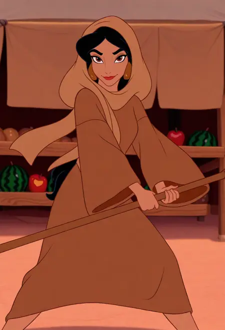 Alright、ディズニーのカップルパックの2つ目のLoRAです!これはジャスミン用に4着、アラジン用に2着の衣装を含んでいます。映画の画像のみで訓練しているため、スタイルを変更したい場合は0.6または0.7をお勧めします。