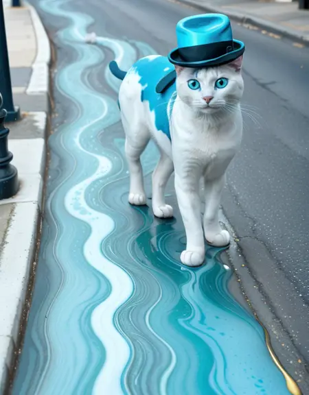 在示例图片中,我使用了相同的提示词:“一只猫戴着帽子站在街头,穿着燕尾服”,并加上一种效果。