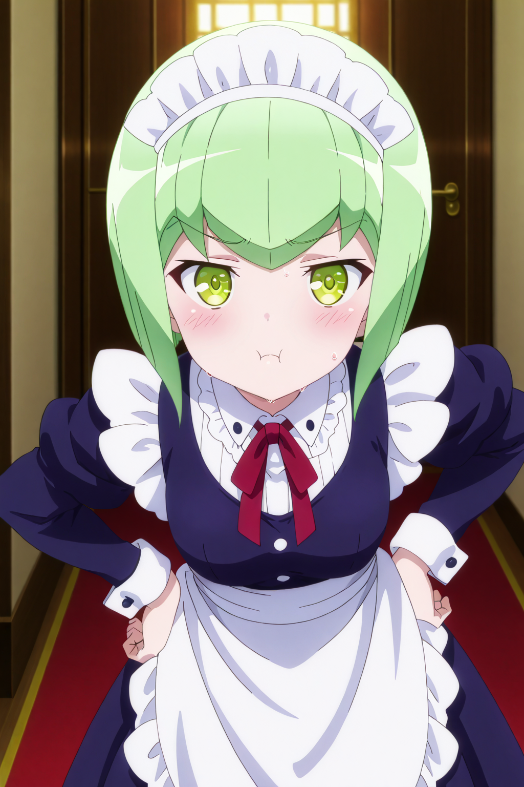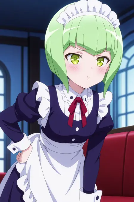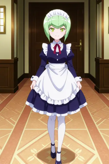 — 효율적이고 감정이 없는, 날카로운 이 하녀는 기계 같은 정밀함과 전통적인 우아함으로 움직인다. 깔끔한 외모와 단단한 시선은 사소한 말을 용납하지 않는다—단, 의무가 요구될 때만 예외다. 그녀는 단순한 하녀를 넘어, 질서의 침묵적인 경비원이다.