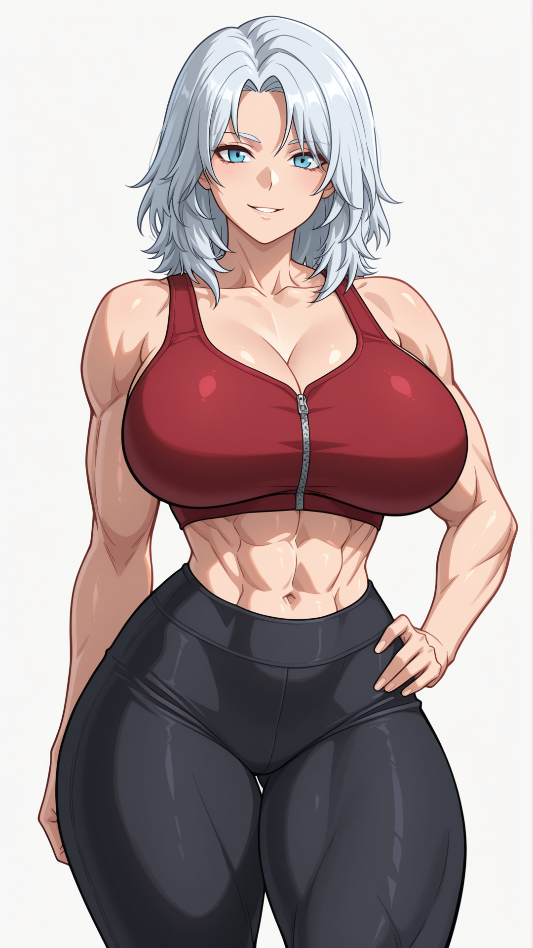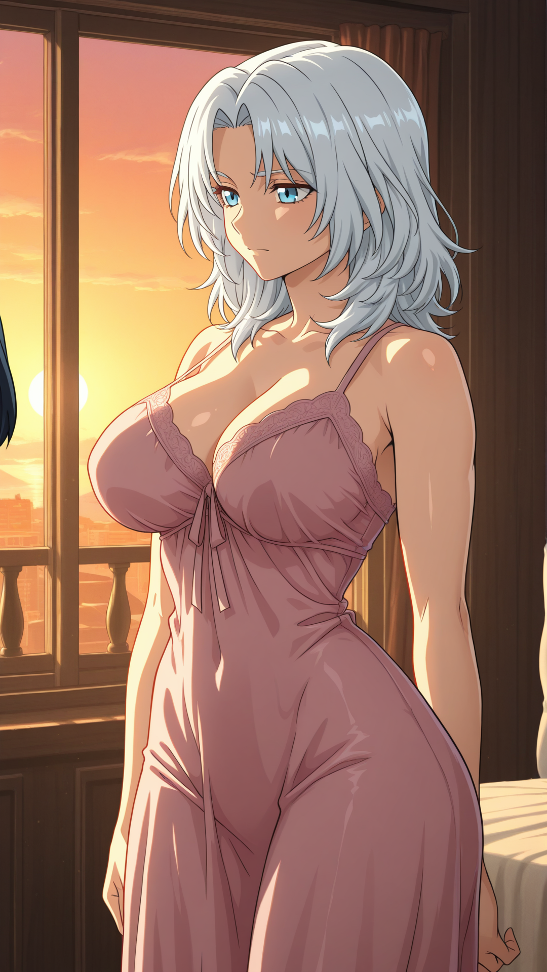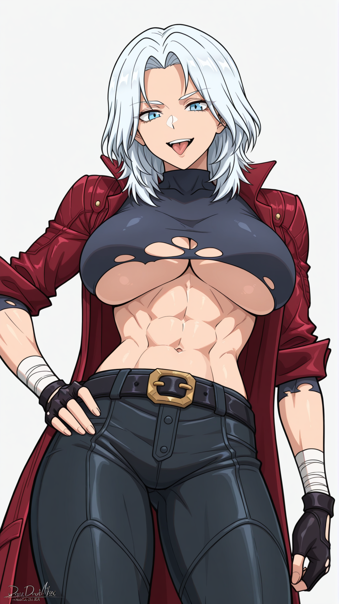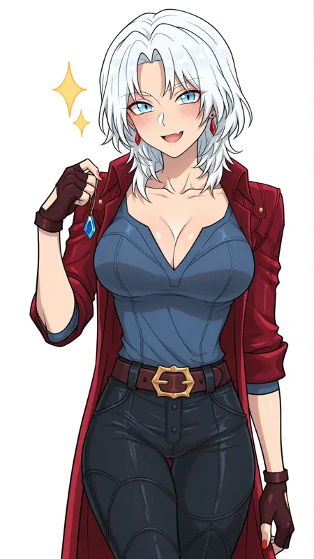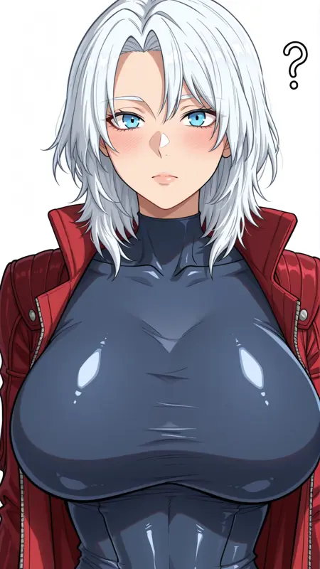 Fem_Dante_XL, medium hair, white hair, parted bangs,