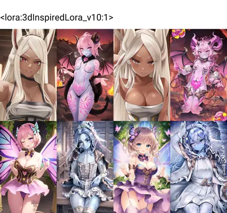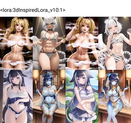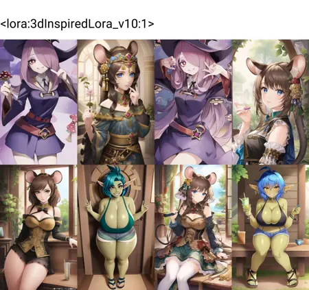 このLoRAは1.0の強度で使うことで、完全な3D効果を得られます。このモデルはNovelAIで学習されていますので、アニメモデルでの使用が最も効果的です。4枚目の画像まではAOM3を使用し、すべての画像にHires Fixを適用しています。残りの4枚については、独自に作成したモデル「Sardonyx」と「Galena _ cough cough _」を使用しました。このモデルにはキーワードの追加は不要ですが、'overwatch'というキーワードを含めると、オーバーウォッチのスタイルをより正確に再現するかもしれません。