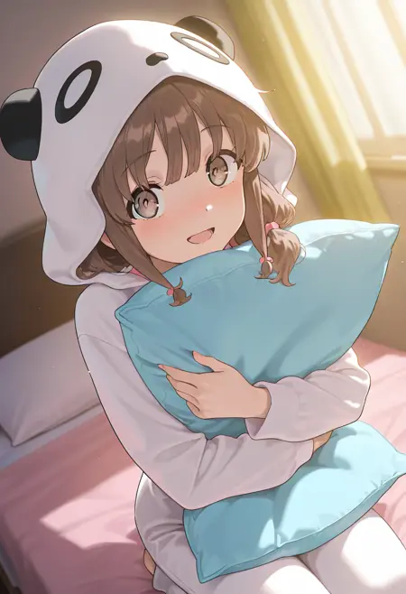 복장 태그: 긴 소매, 파자마, 동물 헤드, 동물 코스튬, 날카로운 선, 원지, 동물 무늬, 판다 귀, 판다 코스튬