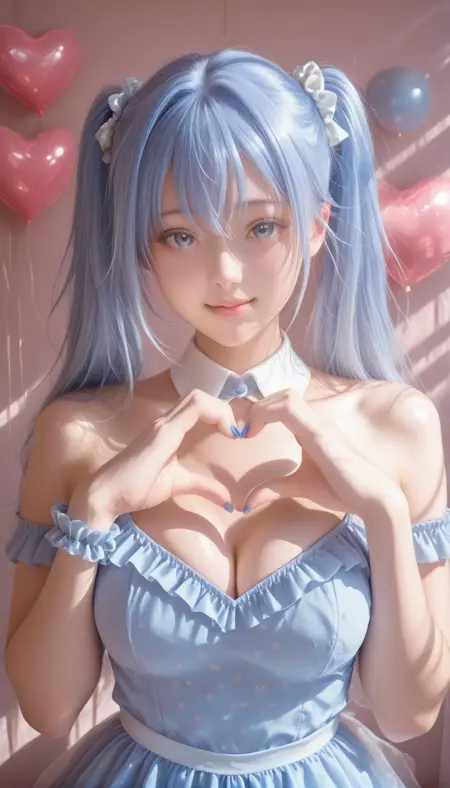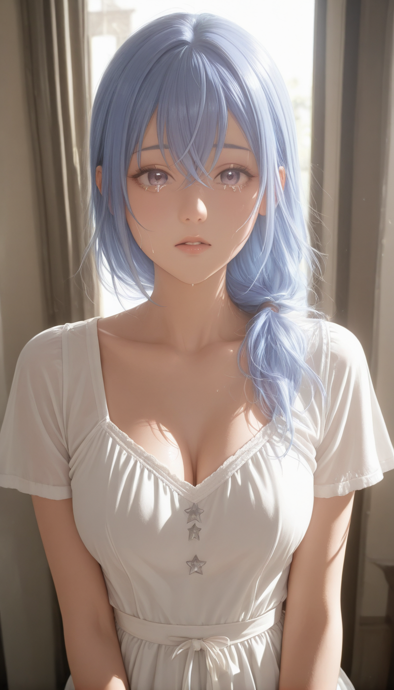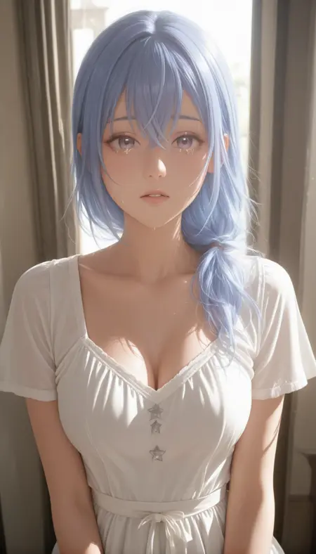 IMSuzuHana, 긴 머리, 가슴, 파란 눈, 큰 가슴, 눈 사이 머리카락, 파란 머리, 교차한 앞머리, 옆머리,