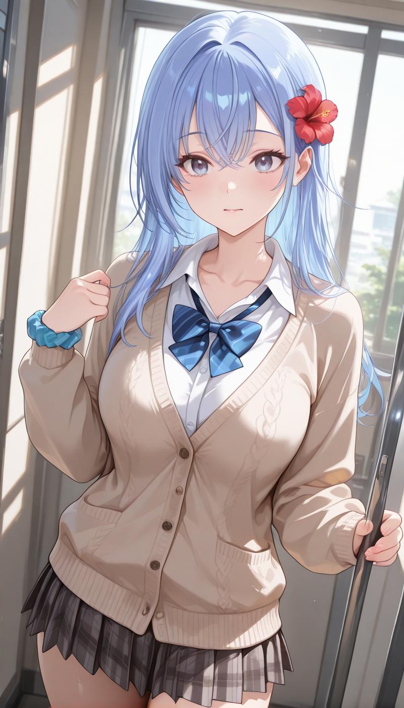 셔츠, 스커트, 긴 소매, 머리 장식, 리본, 보석, 학교 유니폼, collarbone, 흰 셔츠, 꽃, 허벅지, 주름 스커트, 칼라 셔츠, 넥타이, 검은 스커트, 머리 꽃, 미니 스커트, 줄무늬 옷, 스웨터, 손톱, 소매가 손목보다 긴, 체크무늬, 단추, 파란 리본, 체크 스커트, 스컹치, 카디건, 빨간 꽃, 회색 스커트, 갈색 스커트, 파란 넥타이, 팔목 스컹치, 히비스커스, gyaru, 갈색 카디건, 느슨한 리본, 검은 리본,