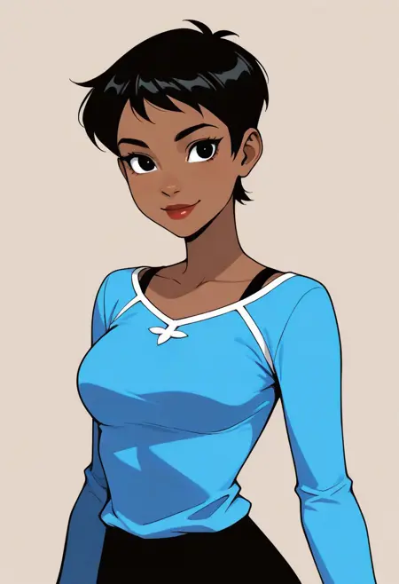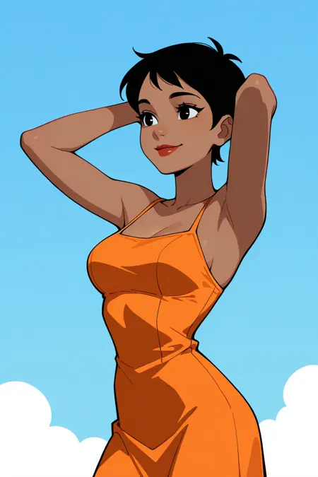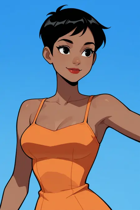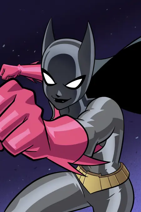 | 训练词汇 | kathy,1girl, solo, black hair, short hair, black eyes, red lips, dark skin, dark-skinned female, orange dress, sleeveless dress, medium breast,smile已复制! batwoman,1girl,solo,bat ears,white eyes,no pupils,black lips,grey mask,grey bodysuit,cape,pink bat print,medium breast,pink gloves,belt,superhero,closed mouth,smile已复制! |