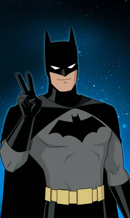 newBatman,1boy,solo,male focus,bat ears,white eyes,no pupils,grey bodysuit,black cape,black gloves,yellow belt,superhero,black boots