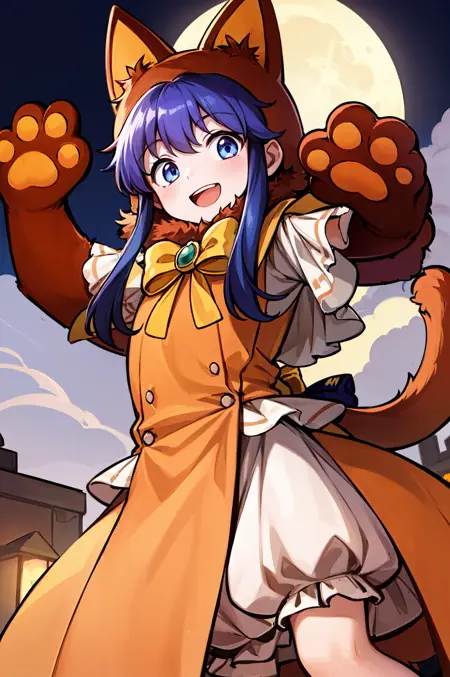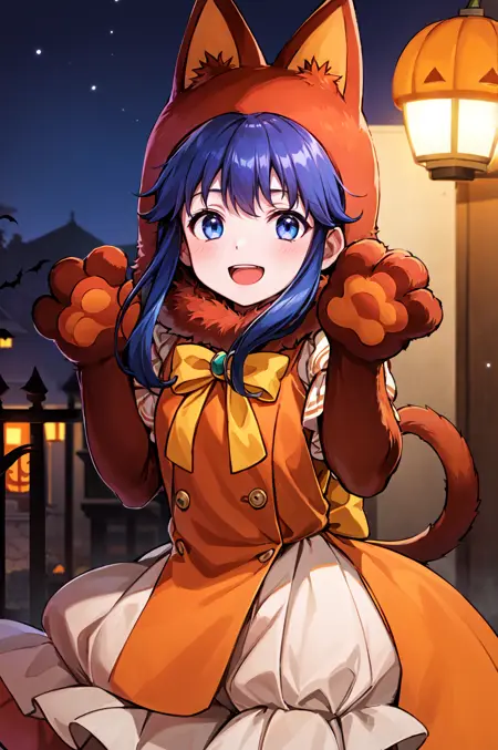 【Halloween outfit】: hal_lilina, animal hood, tail, gloves, animal hands, bow, animal costume, cat paws