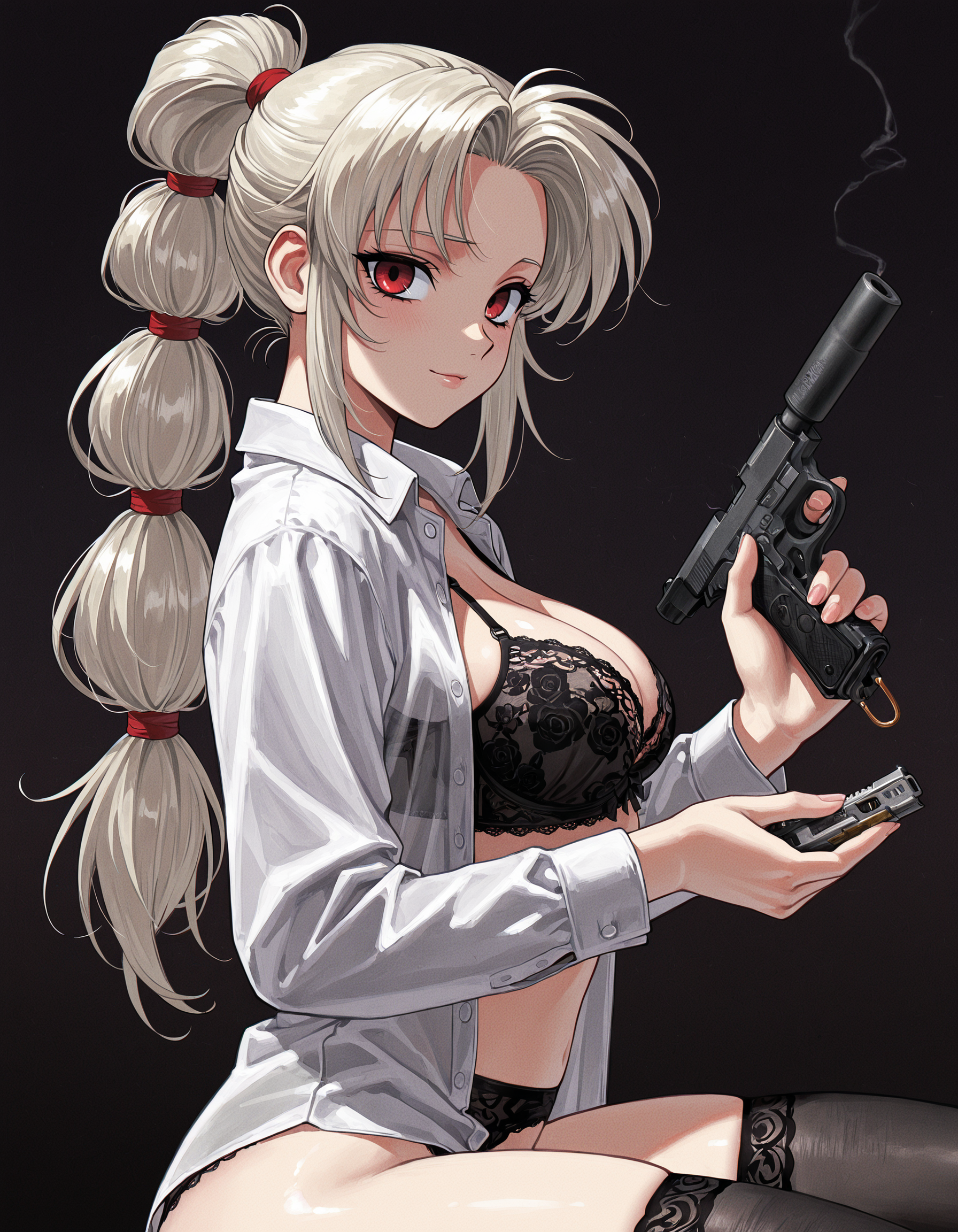 模型在生成枪械操作中涉及的细微复杂变化时表现不佳。此LoRA并未解决这一问题,但对手枪的生成效果有所改善。遗憾的是,结果仍不理想,你仍需结合精选种子、区域提示和ControlNet才能获得满意的效果。或许这能激励他人创作出更优的LoRA。