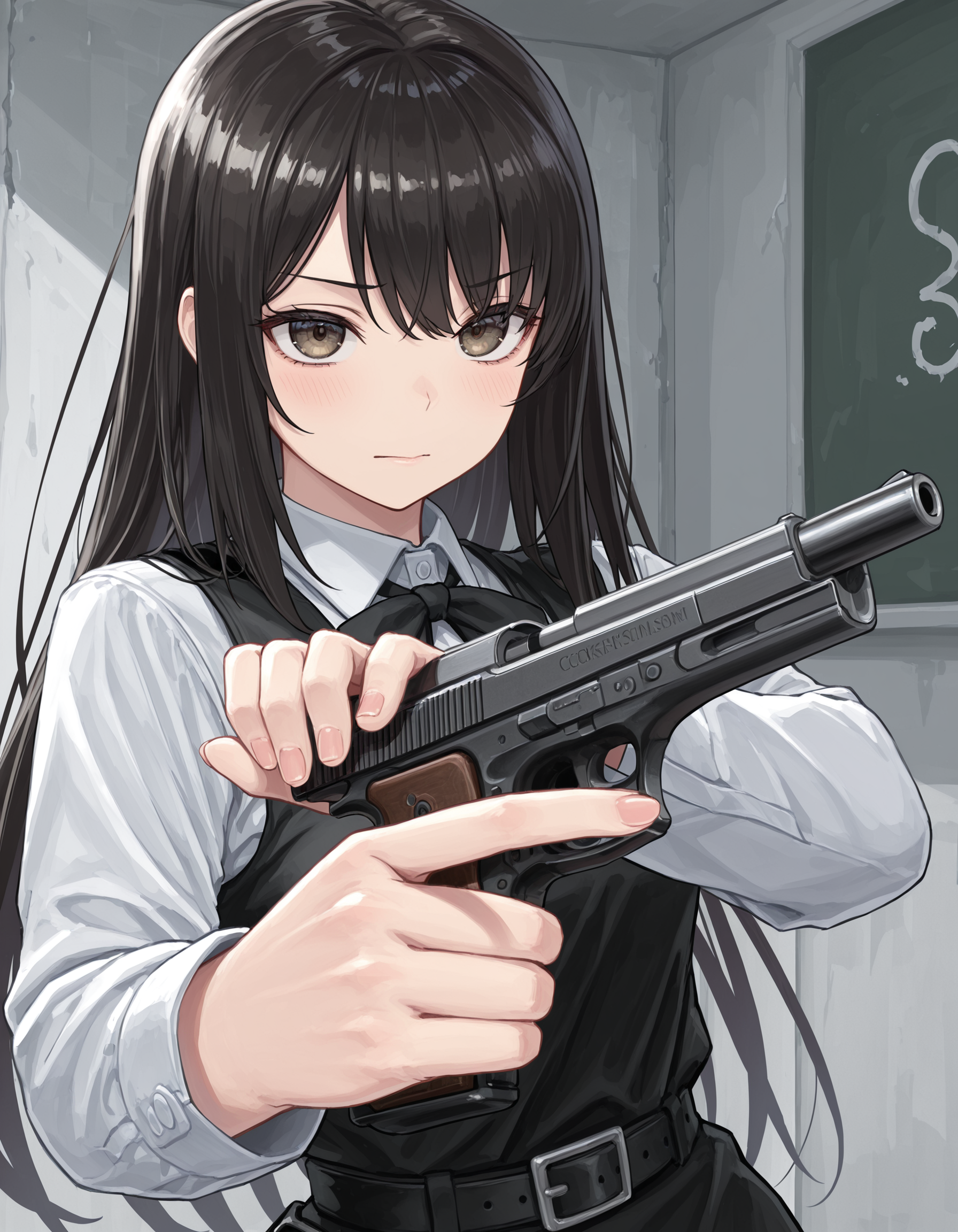 cocking gun, locked slide, smoking barrel, reloading, magazine (weapon), holding gun,
