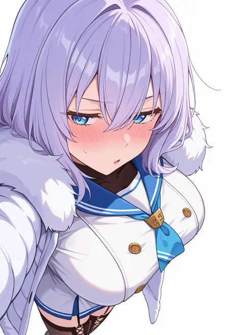 nagomis1_cnr, 1girl, light purple hair, hair between eyes, blue eyes,large breasts,