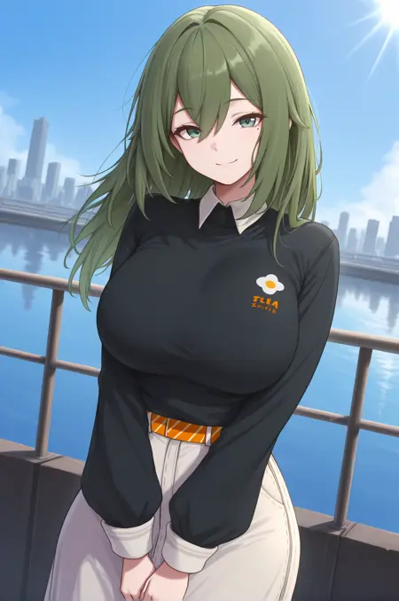 外观:zvn,眼下痣,大胸,绿眼睛,绿发,头发位于眼睛之间,长发