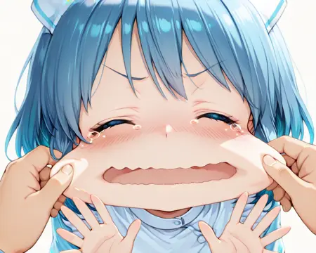 애니메이션 『이 멋진 세계에 축복을!』 시즌 2, 에피소드 7에서 아쿠아의 볼을 당기는 장면을 기반으로 한 LoRA