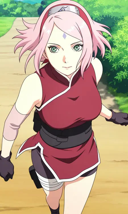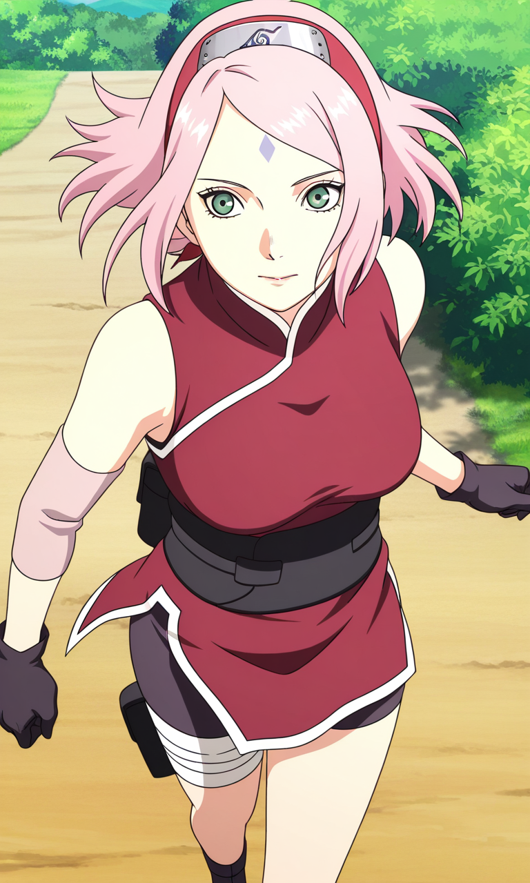 | 학습된 단어 | sakura_haruno (The Last), short hair, green eyes, forehead mark, violet diamond mark, red konoha forehead protector, red hairband, red sleeveless shirt, qipao dress, white trim on dress edges, black waistband, black obi, black gloves, pink elbow sleeve, bike shorts, pink knee pads, bandaged left thigh, bandage wrap, pouch, toeless boots, ankle straps, medium_breasts, mature,복사됨! |