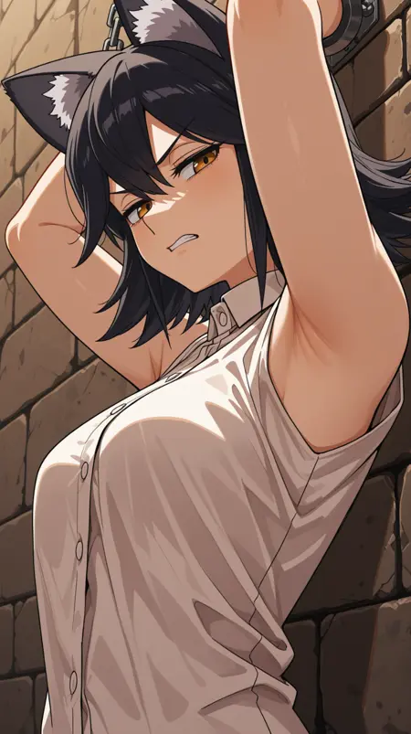 helck5asuta, 短发, 黑发, 齐刘海, 发丝遮眼, 动物耳朵, 动物耳绒毛, 狐狸耳朵, 棕色眼睛,