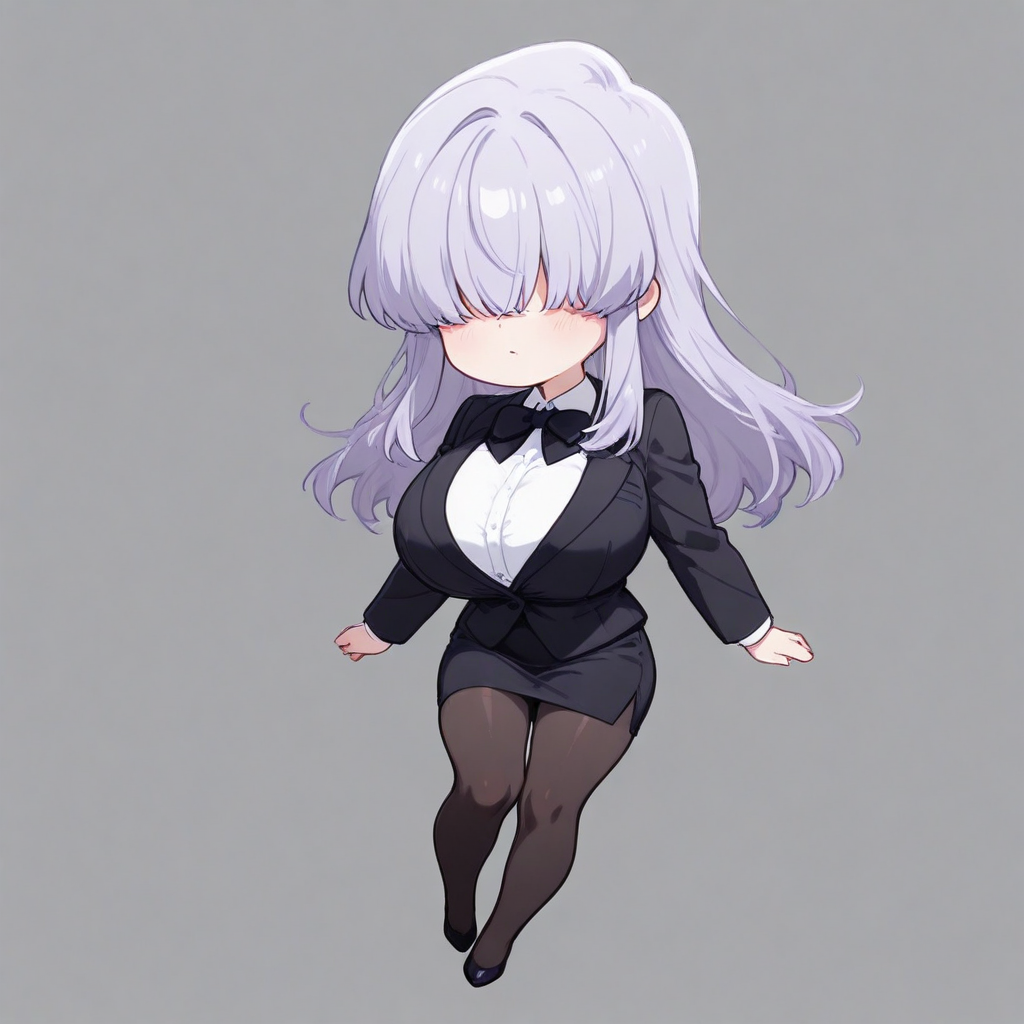 office lady, side slit,pencil skirt, long sleeves, suit jacket,white shirt, bowtie, black pantyhose, thighband pantyhose