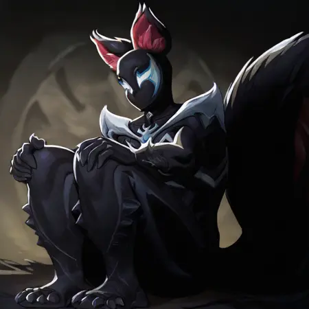 Symbiote S-girl(character), black body, black tail, alien skin, White eyes, tail with mouth, female, fluffy ears,