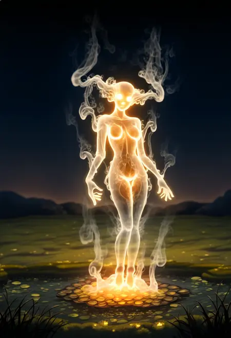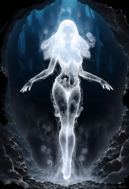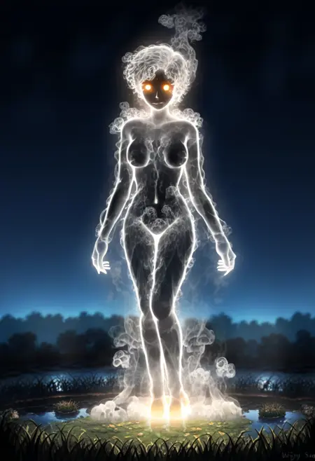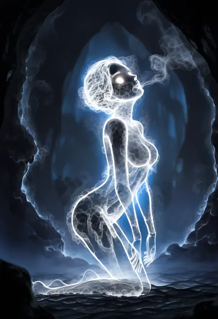 - smoke, semi-transparent, wispy, ethereal, aura, eerie,