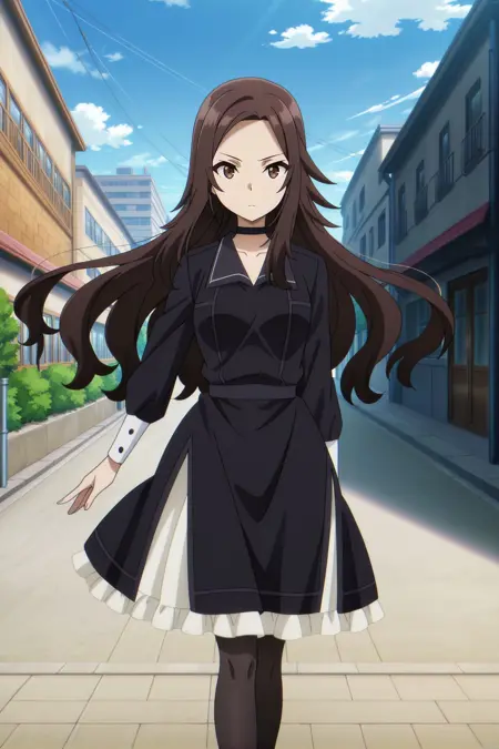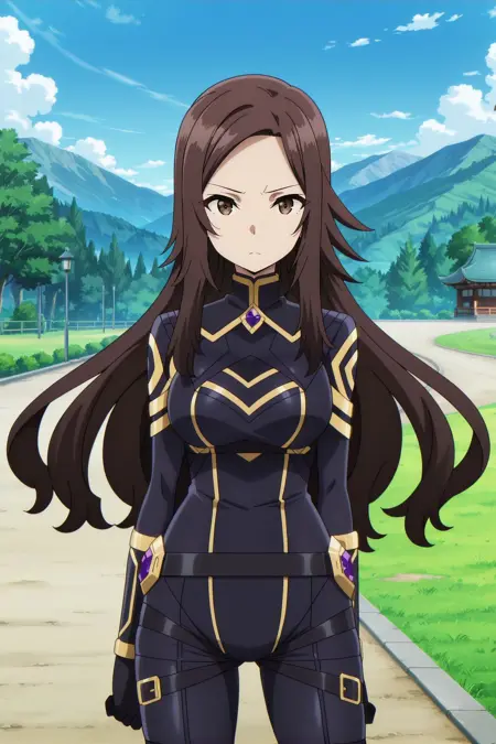 Nu, 1girl, solo, brown eyes, brown hair, long hair,