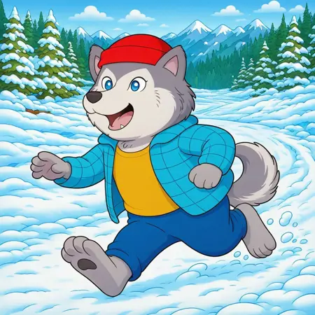 허스키 파란 눈, 리처드 스캐리의 《바쁘고도 즐거운 세계》 에피소드 "록키 산맥의 오이"에 등장하는 그리즐리 잭의 파트너