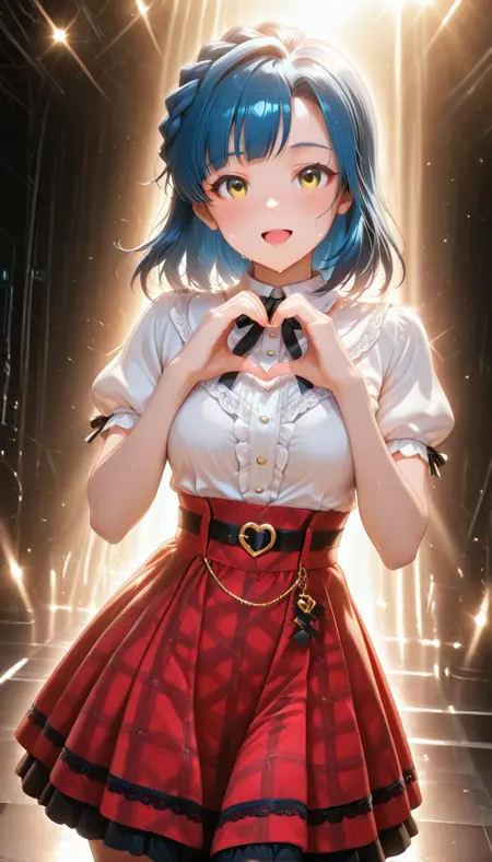 셔츠, 치마, 리본, 띠, 흰 셔츠, 짧은 소매, 주름, 벨트, 넥타이, 부풀어 오른 짧은 소매, 체크무늬, 목 띠, 검은 띠, 빨간 치마, 체인, 체크무늬 치마, 주름진 치마, 주름진 소매, 레이스 장식, 검은 벨트, 레이스, 허리 높은 치마, 검은 넥타이, 셔츠 넣기, 반짝임, 중앙 주름, 주름진 셔츠, 층층이 쌓인 치마, 아이돌, 금색 체인, 레이스 장식 치마