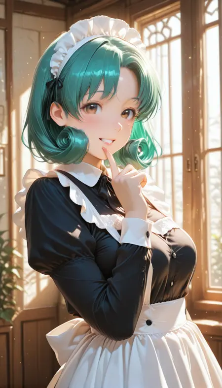 IMTokuMatsu, 가슴, 단발, 갈색 눈, 초록색 머리, 중간 길이 머리, 갈라진 앞머리, 청록색 머리, 색칠된 안쪽 머리, 곱슬머리,