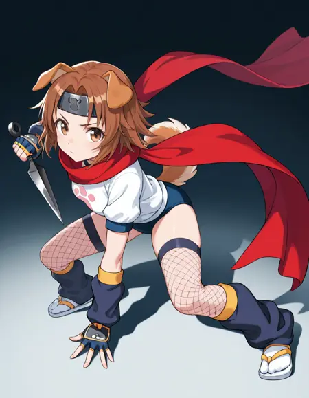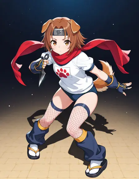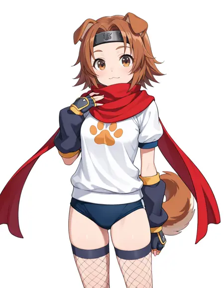 Konohadef, def_buruma, def_scarf, def_fishnet_thighhighs, def_fingerless_gloves, def_gym_uniform, def_socks, def_sandals, def_forehead_protector, paw print
