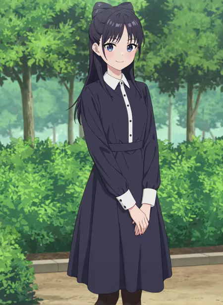 miyao nemu, 長い髪, 黒髪, 青い目, ボウ型の髪