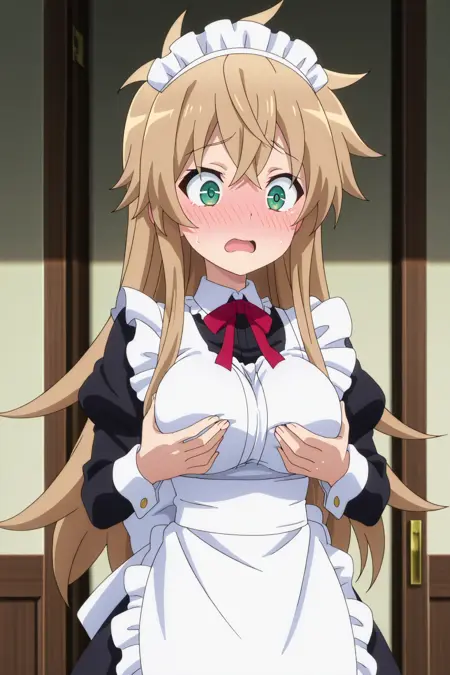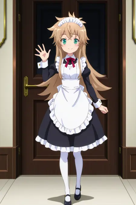 — Cheerful and full of energy, this young maid brings life to every room she enters. Her spiky blonde hair and bright teal eyes reflect her curious, spirited nature. With an expressive face and lively gestures, she’s quick to speak her mind and dive into tasks with enthusiasm. Despite her youthful demeanor, she’s earnest and hardworking, always ready to learn—even if a little clumsy at times.