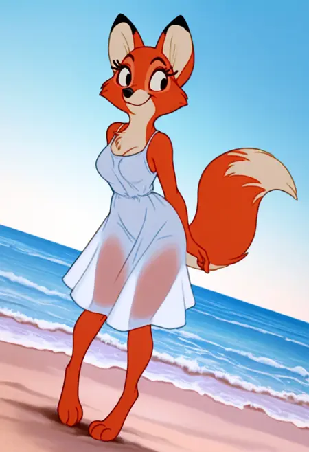 Vixey Fox, from the Fox and the Hound by Disney. Always liked this girl. If her tail becomes too large, use the negative words 'large tail'.